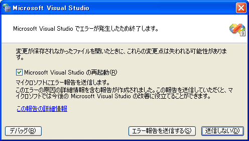 すると、スクリーンショット (b) のように再読み込みを促す情報バーが出るので、クリックすると、スクリーンショット (c) のように IDE がクラッシュする。